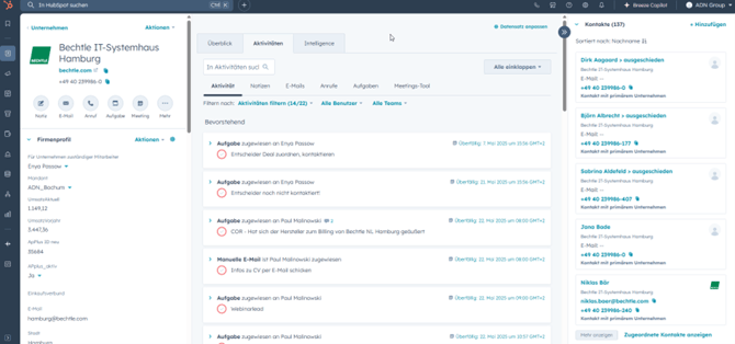In HubSpot bietet der Bereich „Unternehmen" & "Kontakte“ eine zentrale Übersicht über Partner, Reseller oder andere geschäftsrelevante Kontakte. Dieser Artikel zeigt dir, wie du relevante Informationen findest, Aktivitäten verwaltest und effizient mit deinen Kontakten arbeitest.